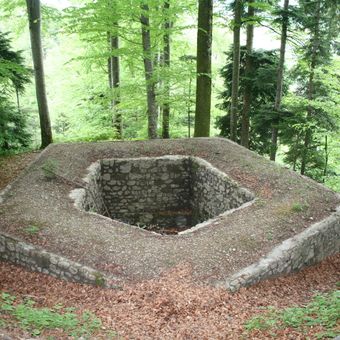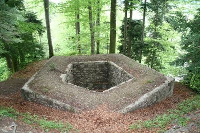 Die Steinreste der Burg Oberes Baliken stehen auf einem runden Hügel mit einem Durchmesser von 30 Metern auf 650 Meter Höhe.