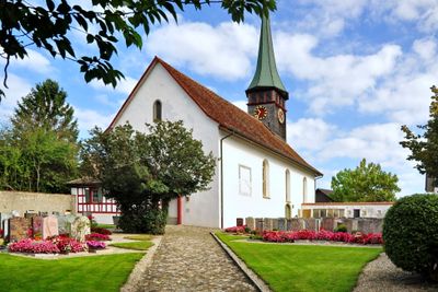 Reformierte Kirche Weiach, Kirchengebäude mit Nebengebäuden in Weiach im Kanton Zürich, Schweiz