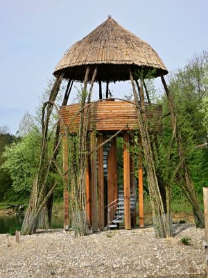 Beobachtungsturm Chly Rhy Auen, Holzturm in Rietheim im Kantons Aargau, Schweiz