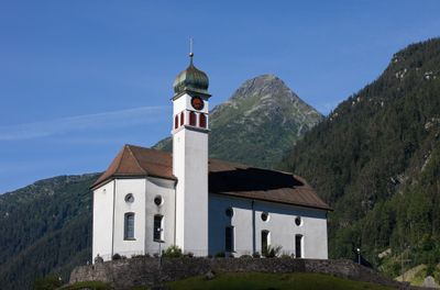 Das Kirchengebäude steht als religiöses Monument in der Ferienregion Andermatt, nahe den Wintersportgebieten.