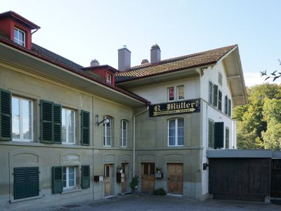 Wohnhaus mit Hammerschmiede, Wohnhaus und Industriegebäude in Worblaufen im Kanton Bern, Schweiz