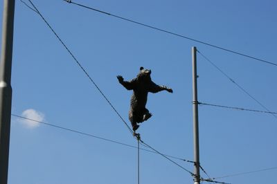 Balancierender Bär, Kunststoffplastik vor dem Bärengraben in der Stadt Bern, Schweiz