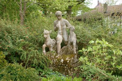 Der Geissbub, Kalksteinskulptur am Aareufer in der Stadt Bern, Schweiz