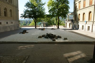 Das Gleichgewicht der Dinge, Steininstallation an der Bundesgasse in der Stadt Bern, Schweiz