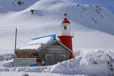 Leuchtturm Rheinquelle, Bergleuchtturm am Oberalppass, Schweiz.