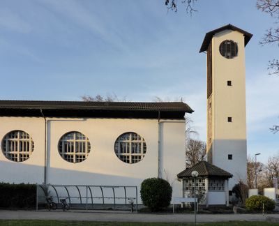Die St. Josefskirche steht mit ihrem markanten Turm an der Kirchstrasse 175 und zeigt eine moderne Architektur, die die Landschaft von Rheinfelden prägt.