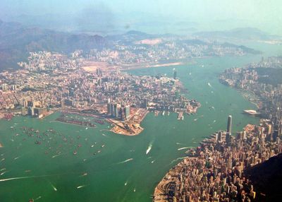 Victoria Harbour, Naturhafen zwischen der Insel Hongkong und der Halbinsel Kowloon, China