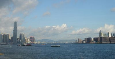Die tiefen Gewässer des Victoria Hafens erstrecken sich über 3 Kilometer zwischen der Insel Hongkong und der Halbinsel Kowloon.