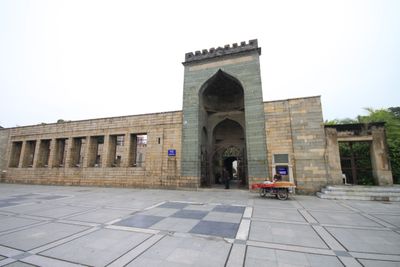 Die Eingangsstruktur vereint chinesische Kassettenmuster in den äußeren Schichten mit arabischen Architekturelementen im gewölbten Innenbereich.