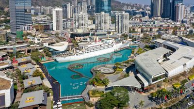 Das Sea World ist ein Touristenplatz in Shekou mit einem ehemaligen Schiff im Zentrum, das heute als Restaurant und Unterhaltungszentrum dient. Rundherum befinden sich internationale Restaurants, Geschäfte und Aufenthaltsbereiche.