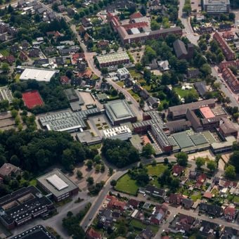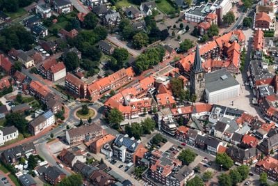 Ahaus ist eine Kreisstadt im Bezirk Borken in Nordrhein-Westfalen und erstreckt sich über rund 150 Quadratkilometer mit Wohngebieten, Einkaufsstraßen und Grünflächen. Die Bebauung verbindet ältere Straßenzüge mit neueren Siedlungen und schafft so ein gemischtes Ortsbild.