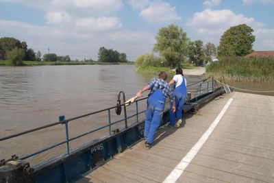 Pünte, Historische Seilfähre in Detern, Deutschland.