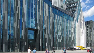 Das Augusteum dient als Hauptgebäude der Universität Leipzig und verbindet moderne Architektur mit Elementen der Fassade seines historischen Vorgängers.