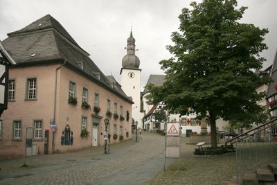 Das Altes Rathaus verfügt über einen Archivturm mit dem Wappenschild des Kurfürsten Maximilian Heinrich von Bayern am nördlichen Pavillon.