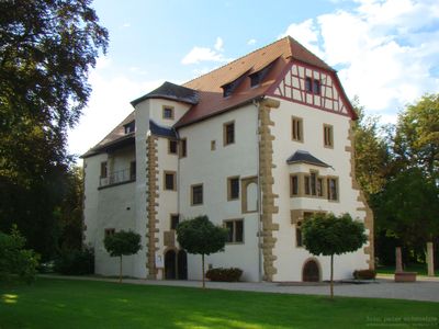Ein Teich namens Schlossteich liegt unmittelbar neben dem Schloss und war ursprünglich Teil der Anlage zur Wasserwirtschaft und Fischzucht. Heute bildet dieser stille Wasserspiegel einen natürlichen Rahmen, der die Architektur des Schlosses vom Umland absetzt.