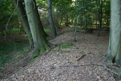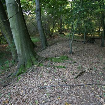Die Anlage umfasst einen breiten Graben von 10 bis 15 Metern um den Umfang, mit dem breitesten Abschnitt am Nordende.