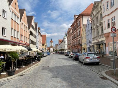 Dillingen an der Donau liegt entlang der Donau mit mittelalterlicher Architektur, Schlossanlage und Straßennetz im Stadtzentrum.