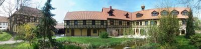 Das Priorat Sankt Wigberti steht in Thüringen mit einer Kirche, Wohnräumen und Bereichen für Gebete und Zusammenkünfte.