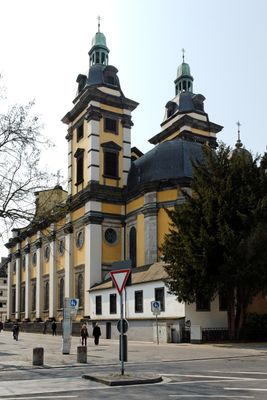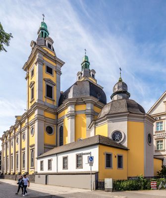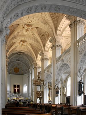 Erbaut zwischen 1622 und 1629, diente das Gebäude als Jesuitenkirche, bevor es 1708 zur Hofkirche der Pfalzgrafen von Neuburg wurde.