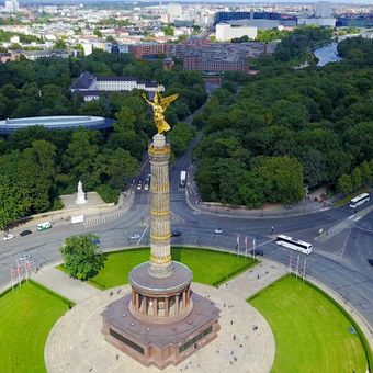 Die Siegessäule in der Mitte kann über 285 Stufen erklommen werden und bietet von oben Ausblicke auf das Brandenburger Tor und den Potsdamer Platz. Diese Perspektive ermöglicht es Besuchern, die Lage des Platzes im Stadtgefüge zu verstehen.