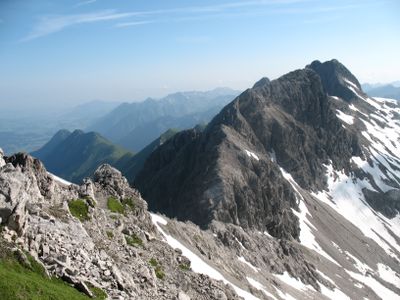 Der Berg weist geologische Formationen auf, wo Wanderer internationale Grenzen ohne Kontrollen zwischen österreichischem und deutschem Gebiet überqueren.