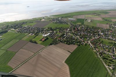 Auf Meereshöhe gelegen, erstreckt sich Wremen entlang der Nordseeküste mit einem Strand, Hafen und Leuchtturm als maritime Kennzeichen.