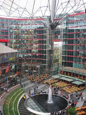 Der von Architekt Helmut Jahn entworfene Komplex eröffnete 1996 auf dem ehemaligen Todesstreifen der Berliner Mauer am Potsdamer Platz.