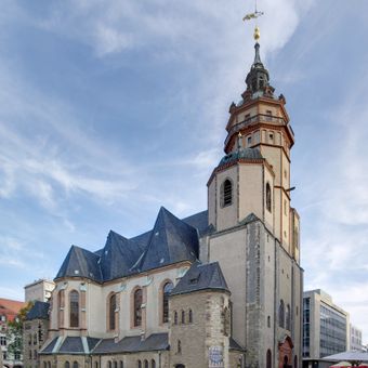 Der Kirchenbau begann 1165 nach der Verleihung der Stadtrechte an Leipzig und wurde Anfang des 16. Jahrhunderts im gotischen Stil umgestaltet.