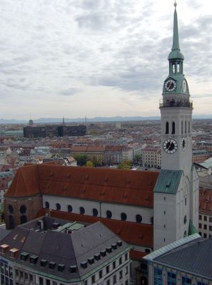 Die Kirche verfügt über einen 91 Meter hohen Turm namens Alter Peter mit acht Uhren und einer Aussichtsplattform über München.