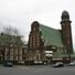 Die Auferstehungskirche zeigt geschwungene architektonische Linien und dekorative Elemente in ihrer Ziegelstruktur, mit Fenstern die natürliches Licht einlassen.