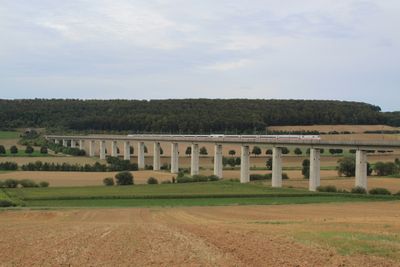 Die Auetalbrücke überspannt ein Tal mit Spannbetonkonstruktion und kastenförmigen Trägern für den Schienenverkehr in der Region.