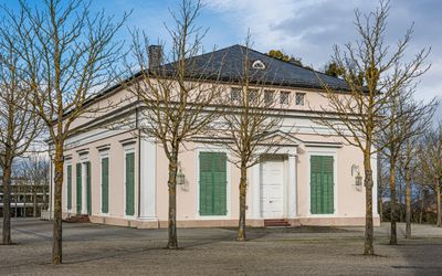 Der Ballroom Pavilion steht im Bergpark Wilhelmshöhe und zeigt die Architektur eines eleganten Gesellschaftshauses aus vergangenen Zeiten. Das Gebäude hat einen klassischen Grundriss mit Säulen und hohen Fenstern, die es hell und offen wirken lassen.