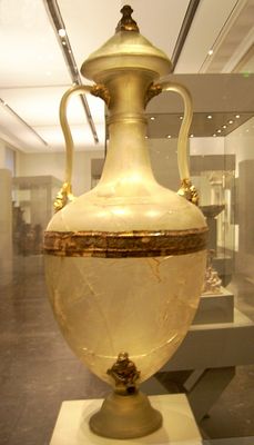Dieses Gefäß ist das größte bekannte Glasgefäß der Antike, hergestellt ohne Glasbläsertechnik durch einen komplexen Verbindungsprozess zweier Teile.