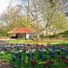 Das Gelände umfasst spezialisierte Bereiche wie einen Rosengarten von 1941, einen Skulpturengarten von 2000 und einen Obstgarten mit regionalen Sorten.