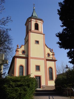 Nach schweren Beschädigungen während der Konflikte des 17. Jahrhunderts und einem Brand 1689 wurde die Kirche wiederaufgebaut und 1771 dem seligen Markgrafen Bernhard von Baden geweiht.