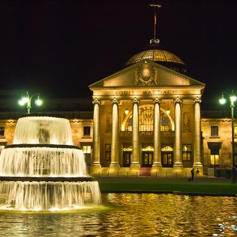Das Kurhaus Wiesbaden ist ein Konzerthaus im Nordosten der Stadt und kombiniert elegantes Design mit modernen Einrichtungen. Es verfügt über zwei Säle für Aufführungen, verschiedene Konferenzräume und eine markante Kuppel über dem Eingang.