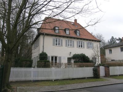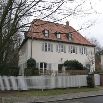 Das Gebäude in der Marienburger Allee 43 beherbergt einen permanenten Ausstellungsraum und Dietrich Bonhoeffers restauriertes Arbeitszimmer im Obergeschoss.