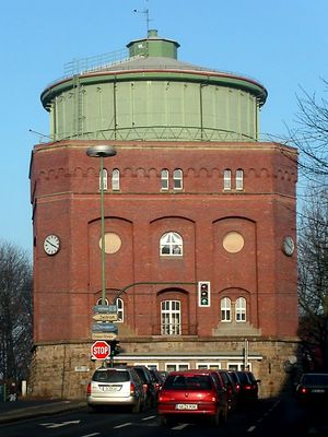 Der Wasserturm am Steeler Berg ist ein Backsteingebäude mit 26 Metern Höhe, das einen massiven Wasserbehälter von 18 Metern Durchmesser trägt und sich an der Diether-Krebs-Platz befindet. Die Konstruktion wurde so entworfen, dass sie auch heute noch ihren ursprünglichen Zweck erfüllt und Wasser für die städtische Versorgung speichert.
