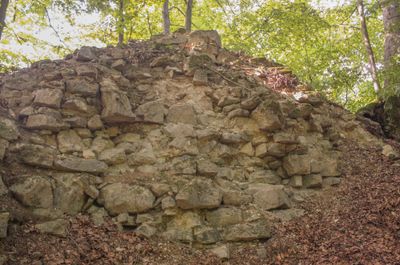 Die Überreste der Burg stehen auf einem künstlich abgeflachten Bergsporn, geschützt durch einen 20 Meter breiten und 13 Meter tiefen Halsgraben.