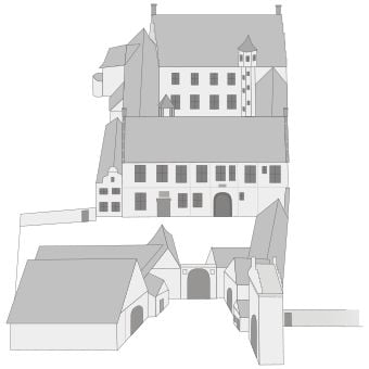 Die Steinfestung steht auf erhöhtem Gelände innerhalb der Stadtgrenzen von Schüttorf, mit Verteidigungsmauern und architektonischen Elementen.