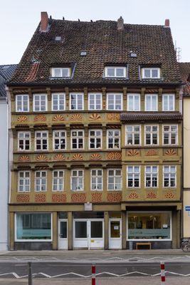 Dieses Wohngebäude gehört zu den ältesten erhaltenen Strukturen in der Altstadt von Hannover und spiegelt Jahrhunderte architektonischer Entwicklung wider.