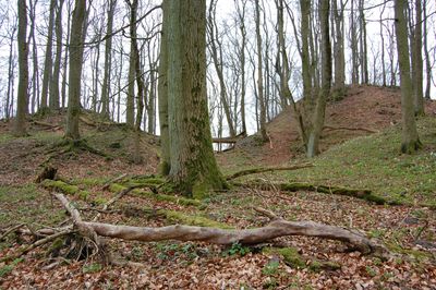 Die Überreste der Burg Großer Gudenberg liegen auf 570 Metern Höhe und bestehen aus zwei befestigten Strukturen mit Verteidigungsmauern und Gräben.