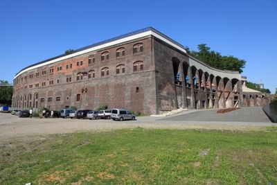 Das Kolosseum besteht aus einer 16 Meter hohen Stützmauer aus 2,8 Millionen Ziegeln, die die südliche Grenze des Westparks bildet.