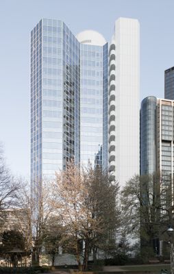 Das Gebäude steht in der Nähe der Alten Oper und schafft eine visuelle Verbindung zwischen Frankfurts Finanzzentrum und seinen kulturellen Einrichtungen.