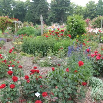 Besucher können den Garten über markierte Wege mit 38 Informationsstationen erkunden, mit spezialisierten Bereichen für verschiedene Rosenklassifikationen.