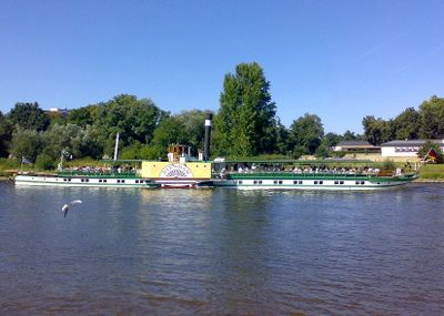 Das ENI 05802450 ist ein historischer Schaufelraddampfer in Dresden, der etwa 52,72 Meter lang ist und heute als Rundfahrtschiff auf Flüssen in Ostdeutschland verkehrt. Das Schiff behält seine originalen Dampfmaschinensysteme und das charakteristische Schaufelrad bei, das das Wasser antreibt.