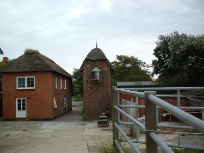 Dieses Bauwerk ist der kleinste Leuchtturm Deutschlands und verfügt über ein traditionelles Reetdach, das ihn von anderen Leuchttürmen unterscheidet.
