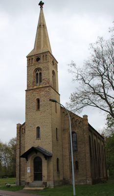 Dorfkirche Pinnow, Neuromanische Kirche in Pinnow, Deutschland.