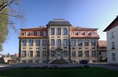 Schloss Erxleben ist ein Steinbau in Erxleben und zeigt Merkmale aus verschiedenen Zeitepochen. Das Gebäude kombiniert Elemente der mittelalterlichen Architektur mit später hinzugefügten Details von verschiedenen Bewohnern.