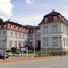 Das Neues Schloss zeigt sich als mehrstöckiges Gebäude mit weißen Wänden, symmetrischen Fenstern und einem zentralen Eingang zu den umliegenden Gärten.